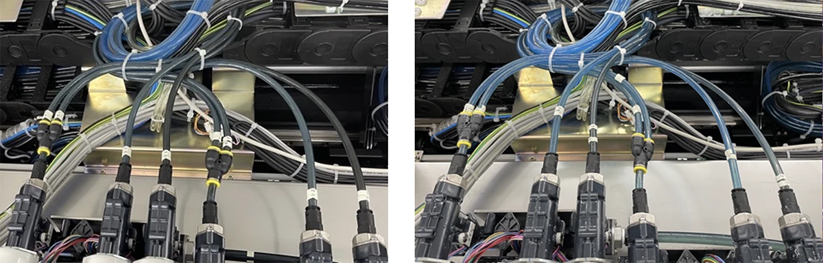 - 在切割工作完成後,在符合設定條件的情況下,自動地清理切割機管路